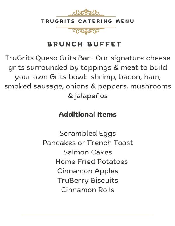 Grits is our epicenter so of course the Grits Bar is our favorite! Customize it with the toppings you like, add fruit and drinks to make your guests happy!