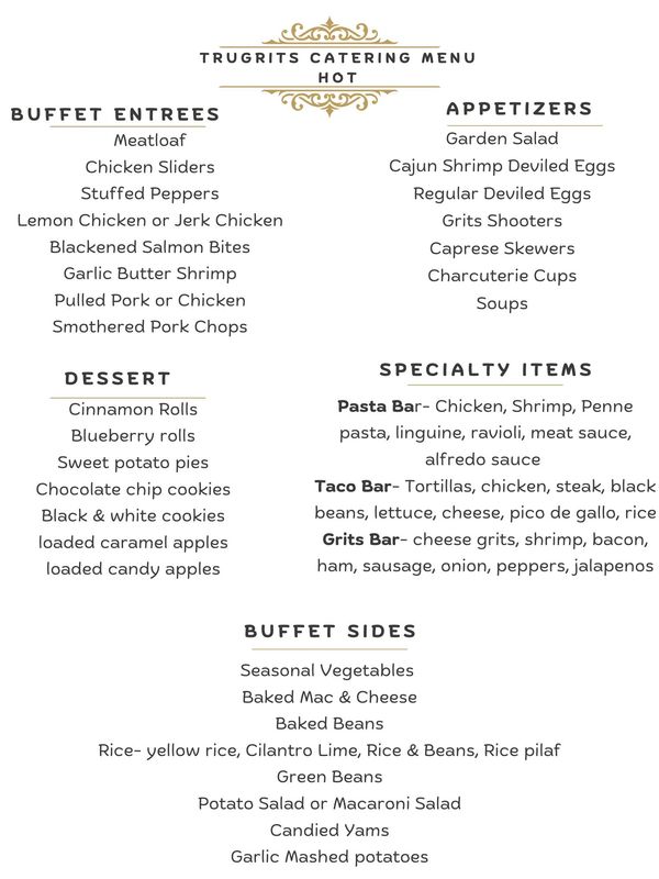 Meat & two sides or three! Throw some dessert and appetizers in there and you'll have some full stomachs. Book & pay in full to get free mini croissants added to your order.